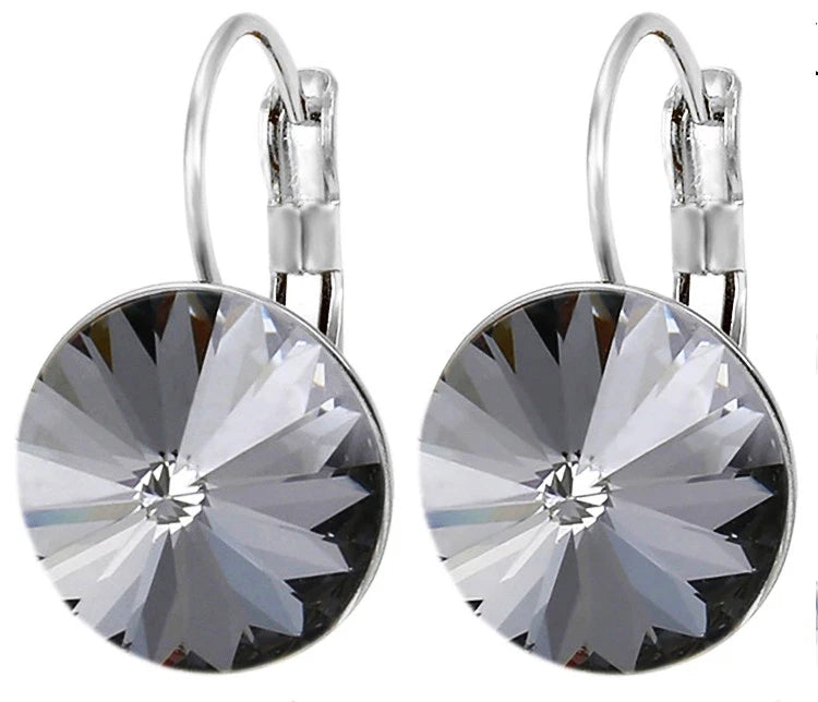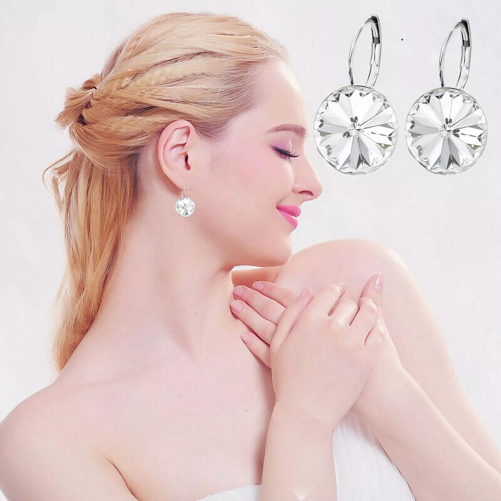 Bella Earrings Women Round Large LEVER BACK made with SWAROVSKI crystal