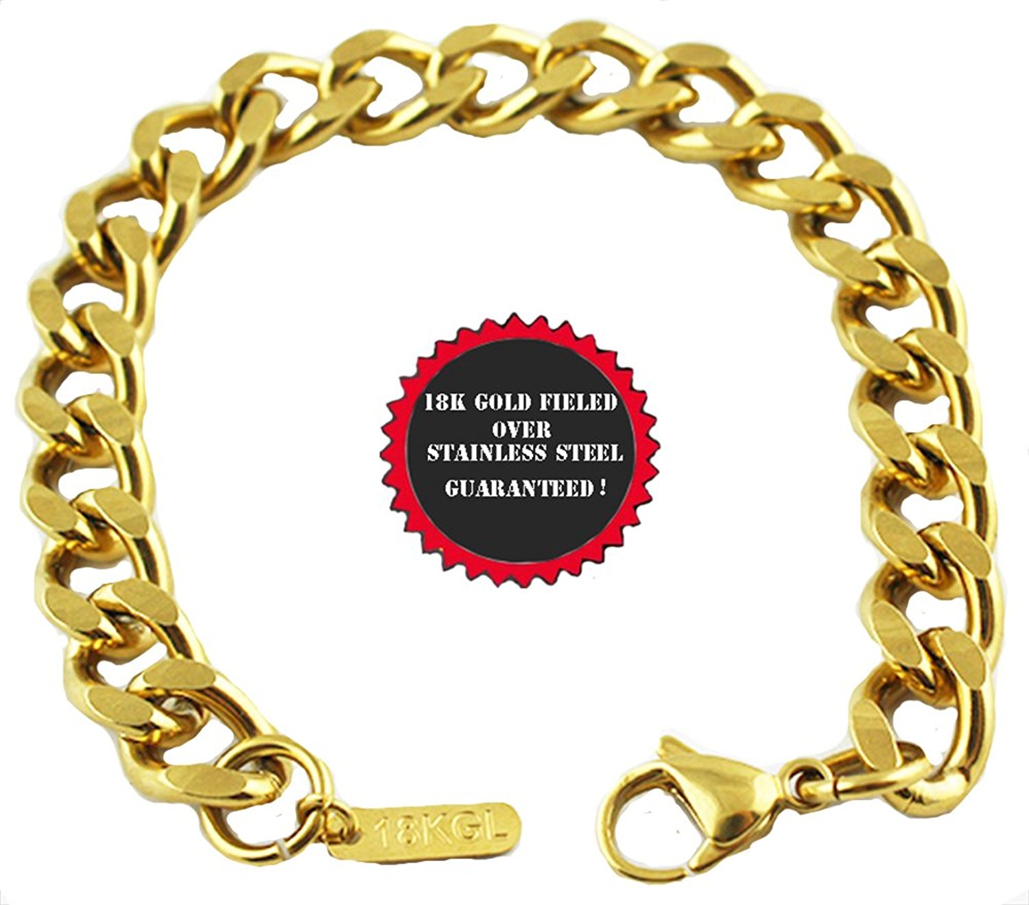 VPKJewelry 18 k gold Stainless steel Link Curb Cuban Chain Bracelets 9 mm 7'',8'' (7.0)