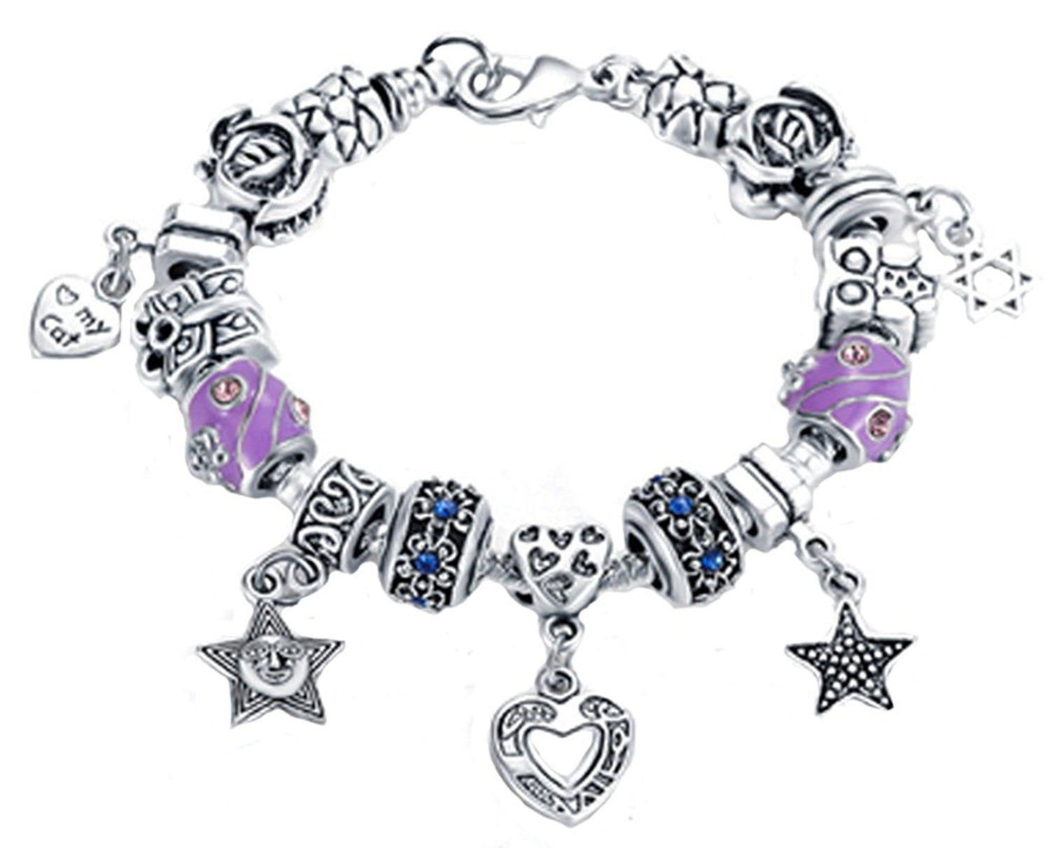 VPKJewelry Charm Bracelet Chain Hearts Stars Bead Austrian and Murano Crystal Silver Plated