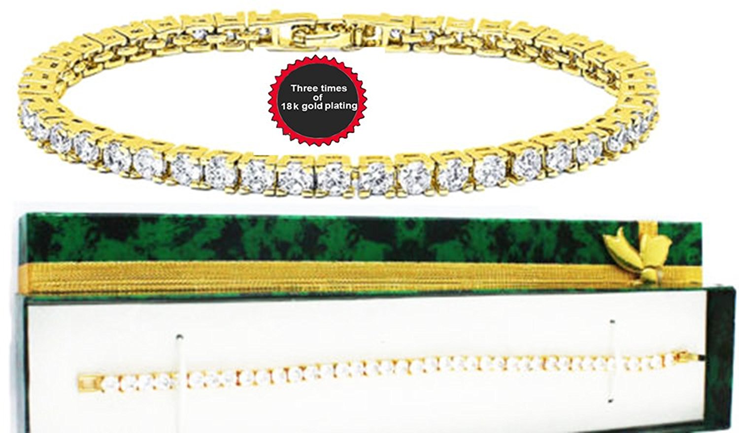 - 18k yellow gold plated over brass tennis bracelets. the bracelets is go with 4 mm top quality CZ looks like real excellent quality diamonds, Nobody will believe you if you say its not natural